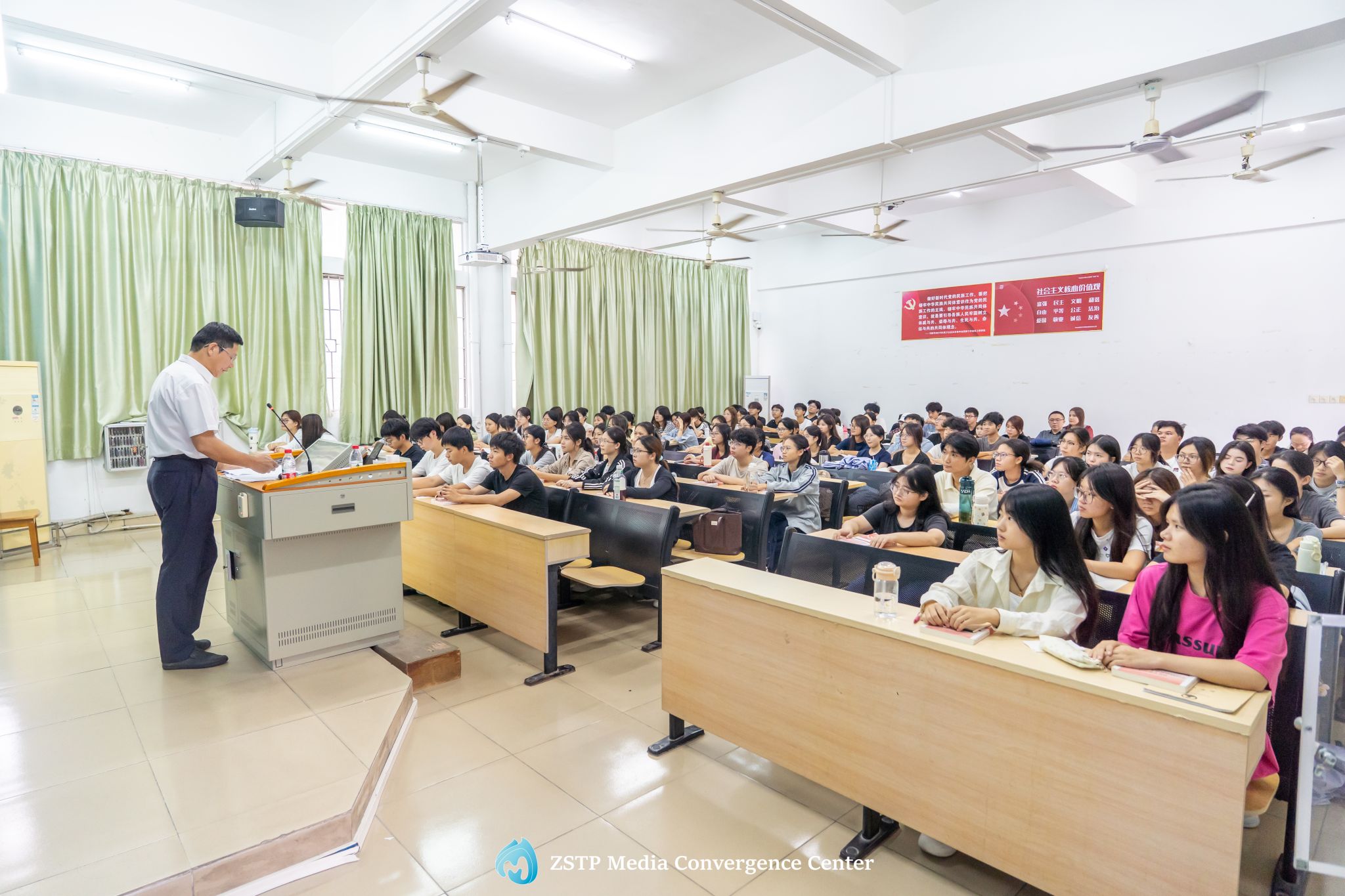 11月7日下午,我校黨委書記鄒鑫在敏學堂102教室講授思政第一課并宣講黨的二十屆四中全會精神,帶領同學們深入學習領會黨的二十屆四中全會精神,共同思考如何將宏偉藍圖轉化為自覺行動,如何在中國式現代化建設的壯闊征程中,在中山這片改革熱土上挺膺擔當,書寫無愧于新時代的青春答卷。