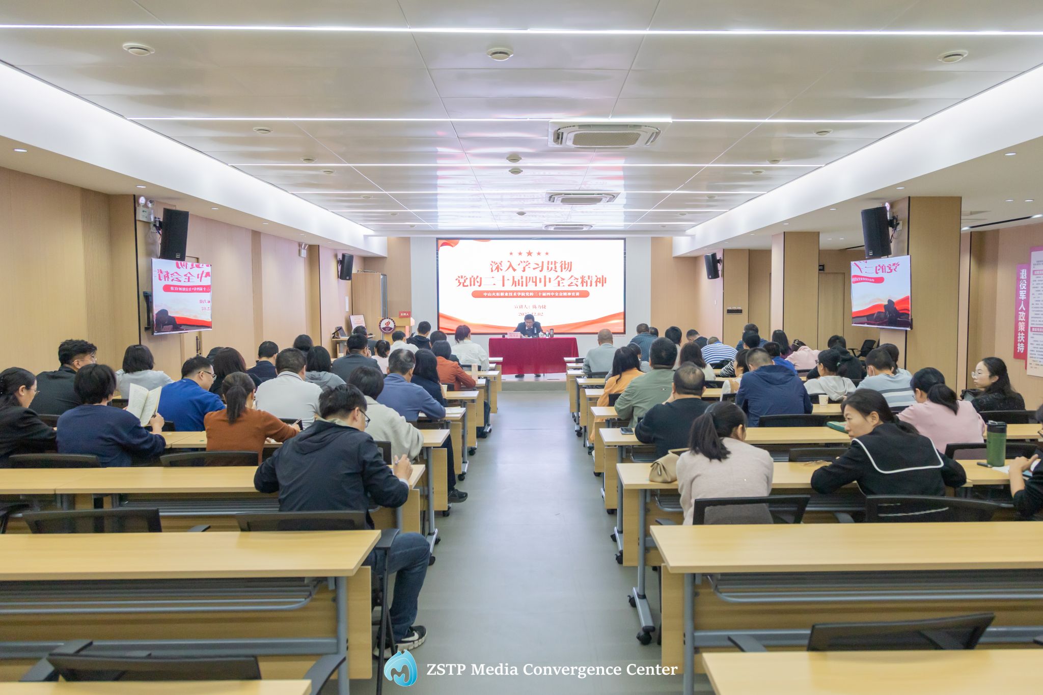 12月2日下午,校學(xué)習(xí)貫徹黨的二十屆四中全會(huì)精神宣講團(tuán)副團(tuán)長(zhǎng)、黨委副書(shū)記、校長(zhǎng)陳力捷在實(shí)訓(xùn)校區(qū)思學(xué)堂一樓會(huì)議室以“深入學(xué)習(xí)貫徹黨的二十屆四中全會(huì)精神 奮力開(kāi)創(chuàng)學(xué)校高質(zhì)量發(fā)展新局面”為題,為包裝設(shè)計(jì)學(xué)院全體教職工、機(jī)關(guān)第二黨支部全體黨員講授專(zhuān)題黨課。