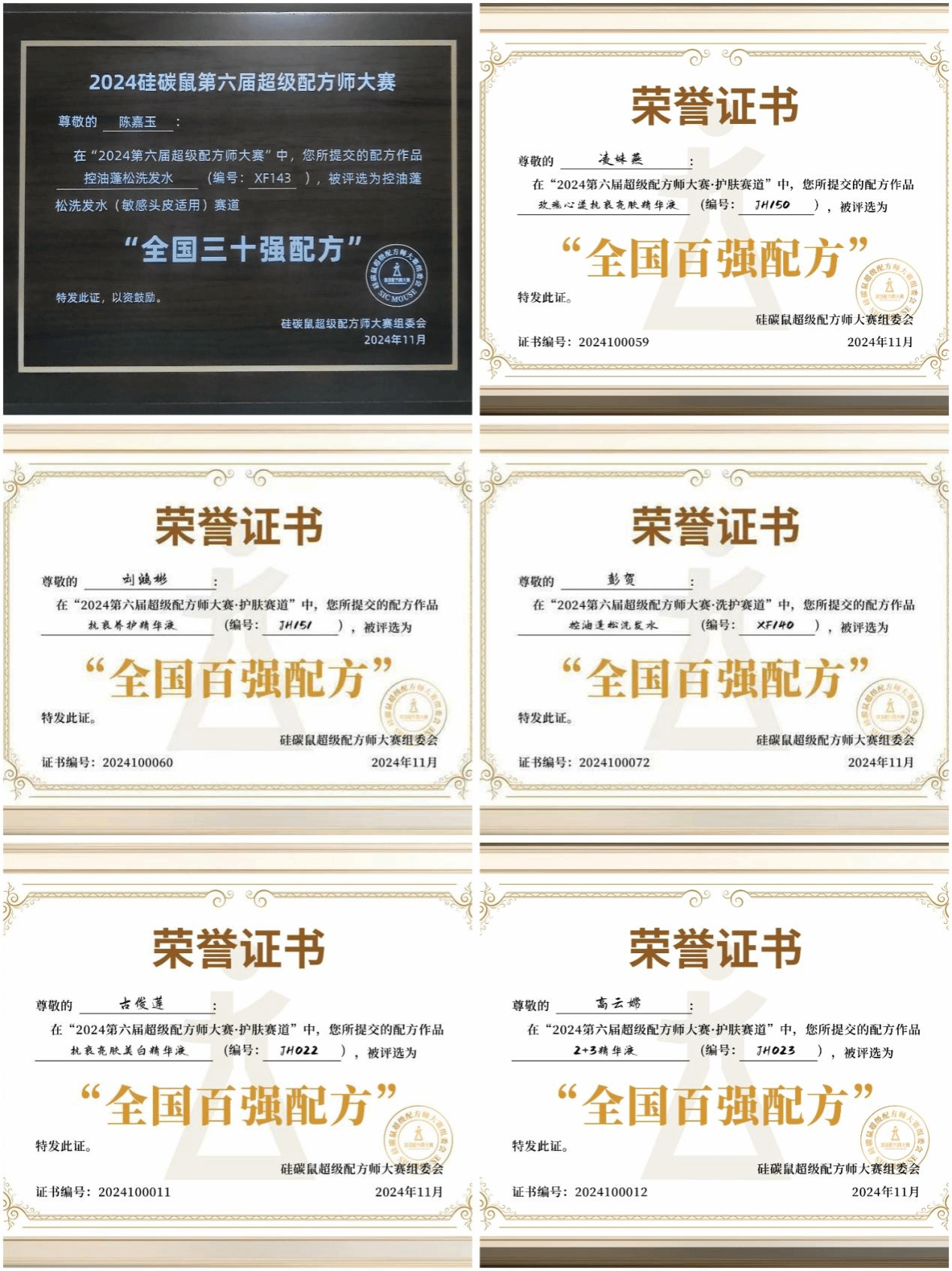 【2024年化妝品硅碳鼠配方師大賽所獲獎項】