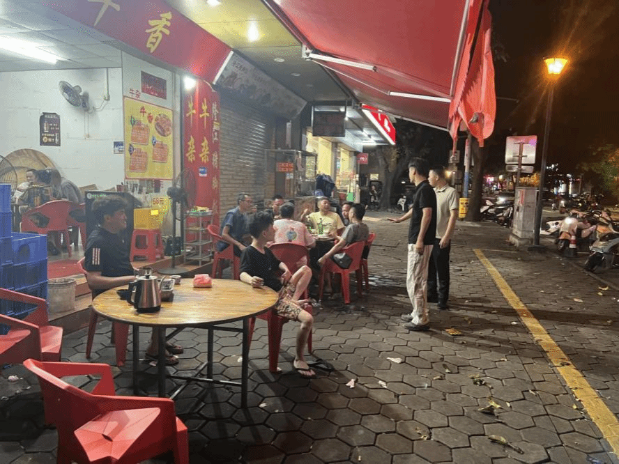 【賈昊楠(右二)在臺(tái)風(fēng)前夕勸導(dǎo)食客盡快回家】