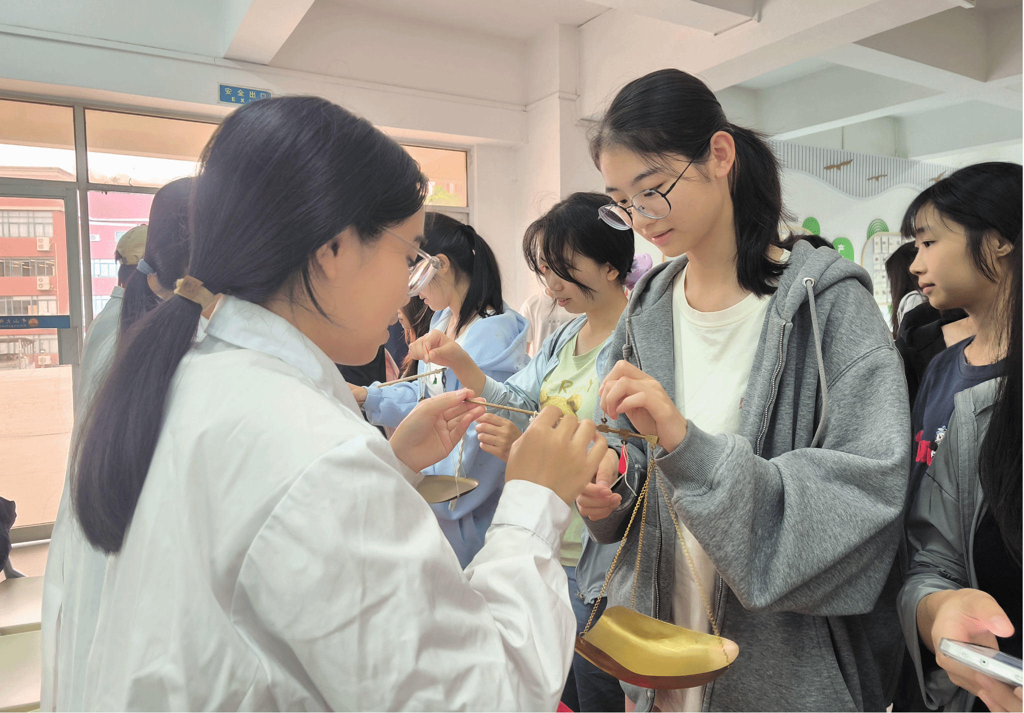 活動現場,戥桿輕搖,藥香裊裊。同學們表現出濃厚興趣,在藥品教研室老師與學生志愿者的細致講解與指導下,學習使用這一古老而精密的稱量工具,感受中藥配制中“分量精準、一絲不茍”的嚴謹精神。活動現場還展示了由藥品教研室主任陳汀波博士帶領學生團隊用艾草、薄荷、丁香等多味天然中藥材制作而成的中藥驅蚊水,讓同學們感受中藥綠色環保驅蚊的效果。