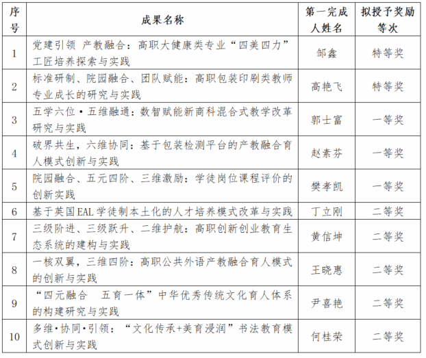 教務部匯總校級教學成果獎申報材料進行形式審查,并聘請5名校外專家評審,形成第六屆校級教學成果獎擬獲獎名單(特等獎2個、一等獎3個、二等獎5個,詳見下表)。擬獲獎名單已經學校教學委員會、學校學術委員會審議通過,現予以公示,公示時間2025年9月15日至2025年9月19日。